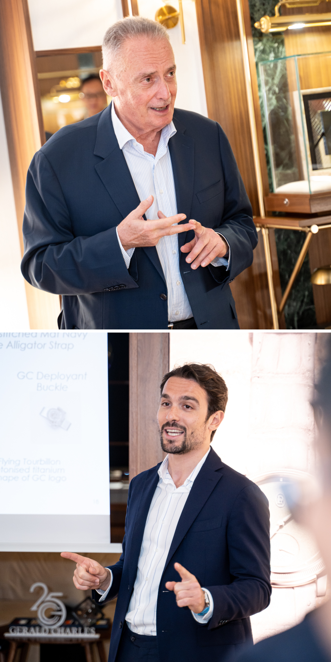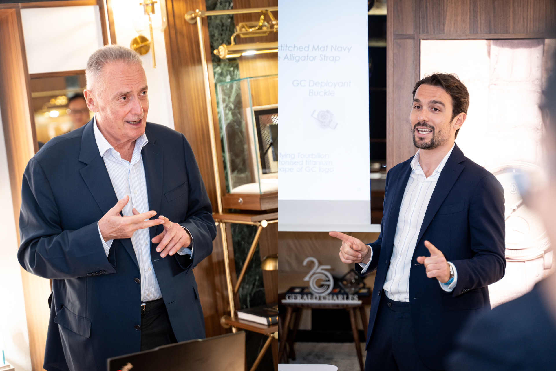 This year marks the 25th anniversary of Gerald Charles. To celebrate, Gerald Charles and Global Timepieces hosted a cocktail party and dinner for esteemed guests. Mr. Franco and Mr. Federico joined in the festivities, showcasing the core collection of Gerald Charles and sharing insights into the intricate design of the watches.