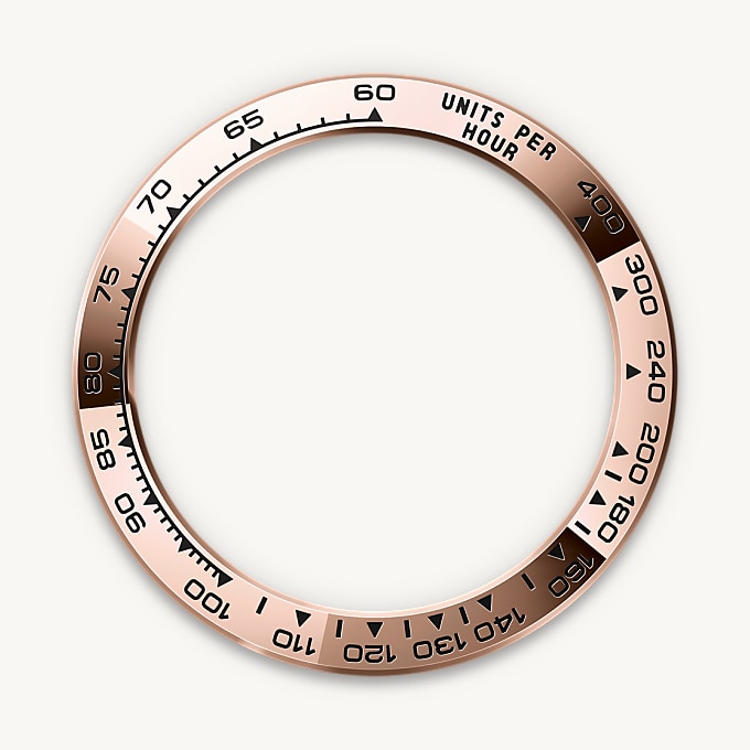 With its tachymetric scale, its three counters and its pushers, the Cosmograph Daytona was designed to be the ultimate timing tool for endurance racing drivers. The bezel features a tachymetric scale to read average speed over a given distance based on elapsed time. This scale offers optimal legibility, making the Cosmograph Daytona the ideal instrument for measuring speeds up to 400 units per hour, expressed in kilometres or miles.