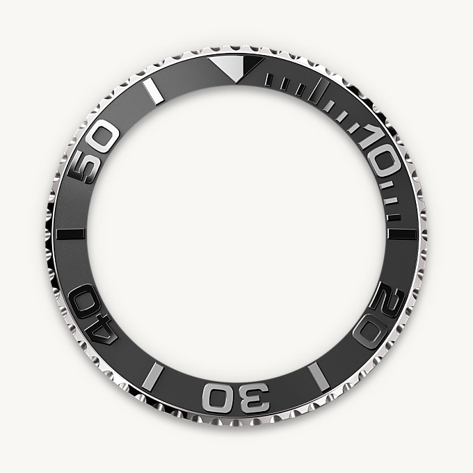 The Yacht-Master’s bidirectional rotatable 60-minute graduated bezel is made entirely from precious metals or fitted with a Cerachrom insert in high-tech ceramic. The raised polished numerals and graduations stand out clearly against a matt, sand-blasted background. This functional bezel – which allows the wearer to calculate, for example, the sailing time between two buoys – is also a key component in the model’s distinctive visual identity.