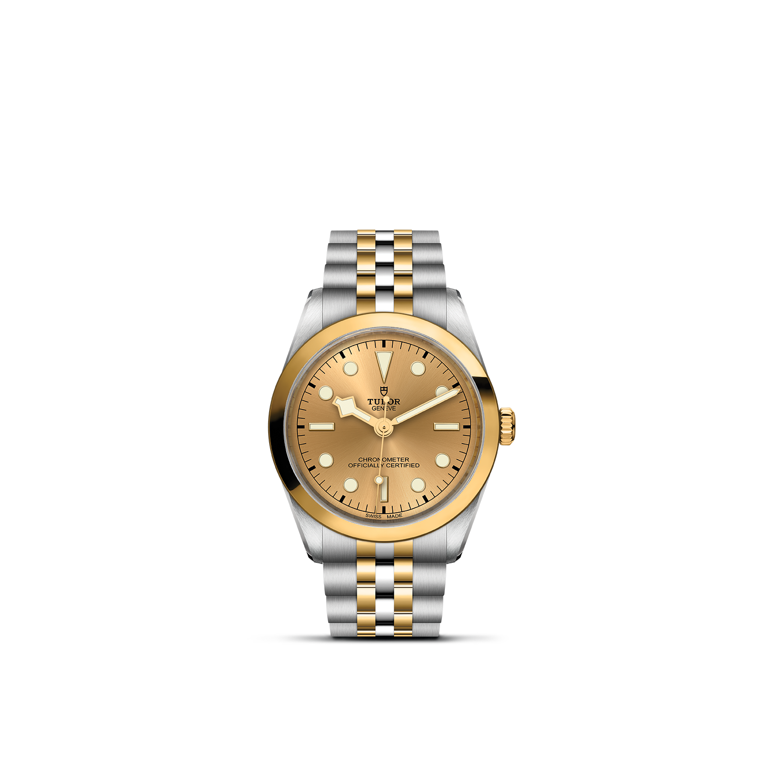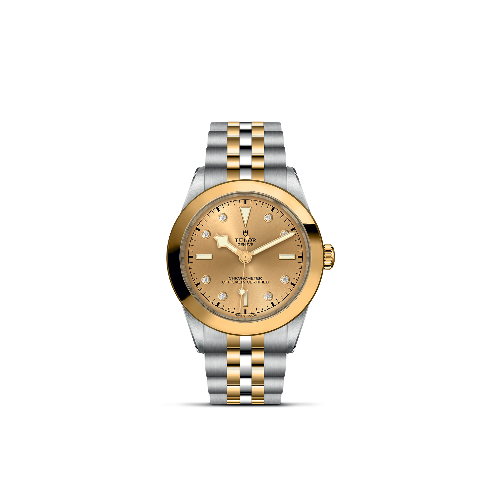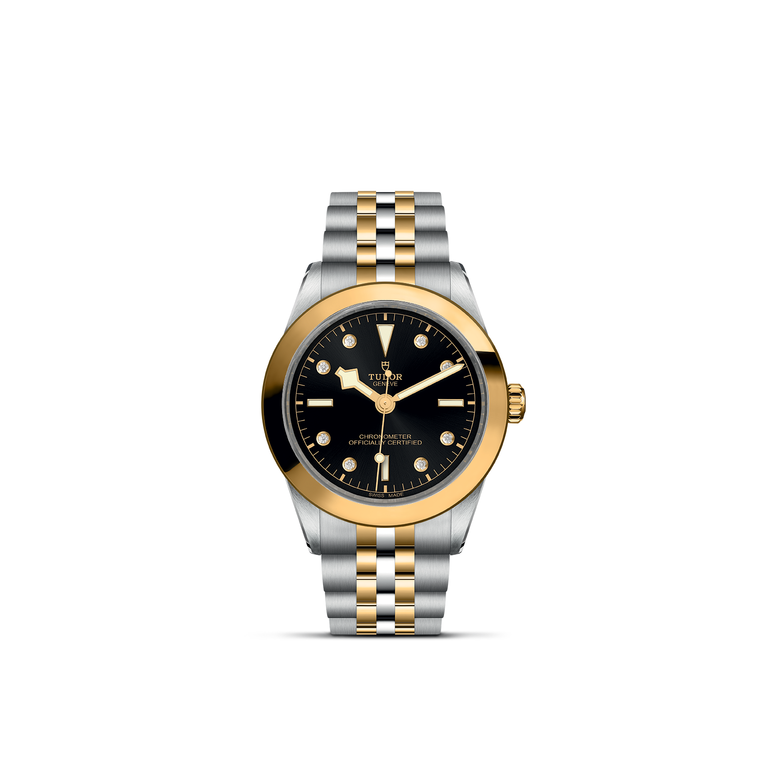 Screw-down winding crown with the TUDOR rose in relief. Steel covered by a 0.1mm yellow gold cap