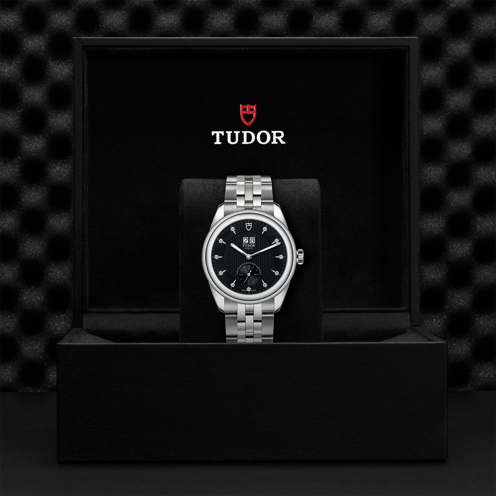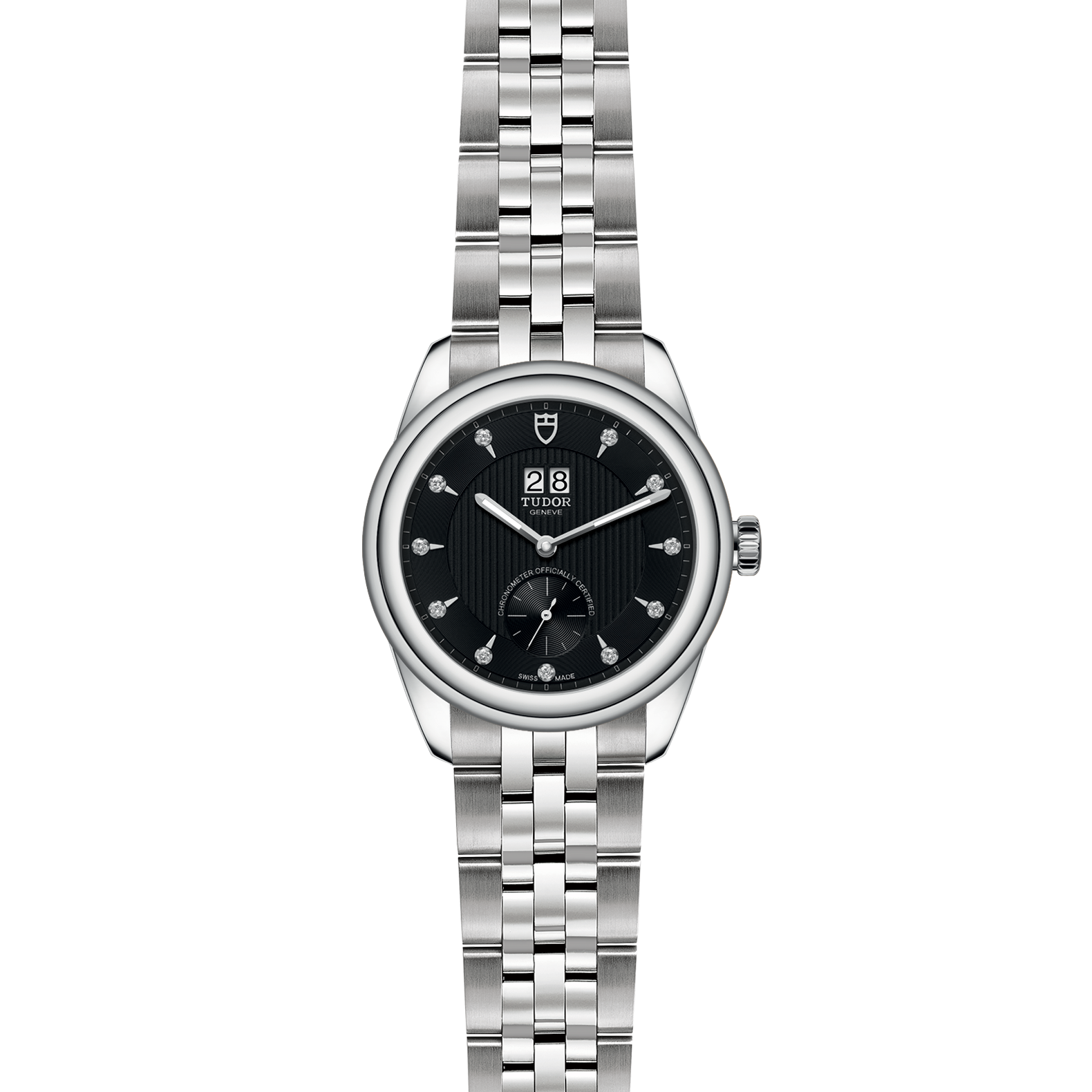 精钢旋入式上链錶冠,饰以帝舵表标志