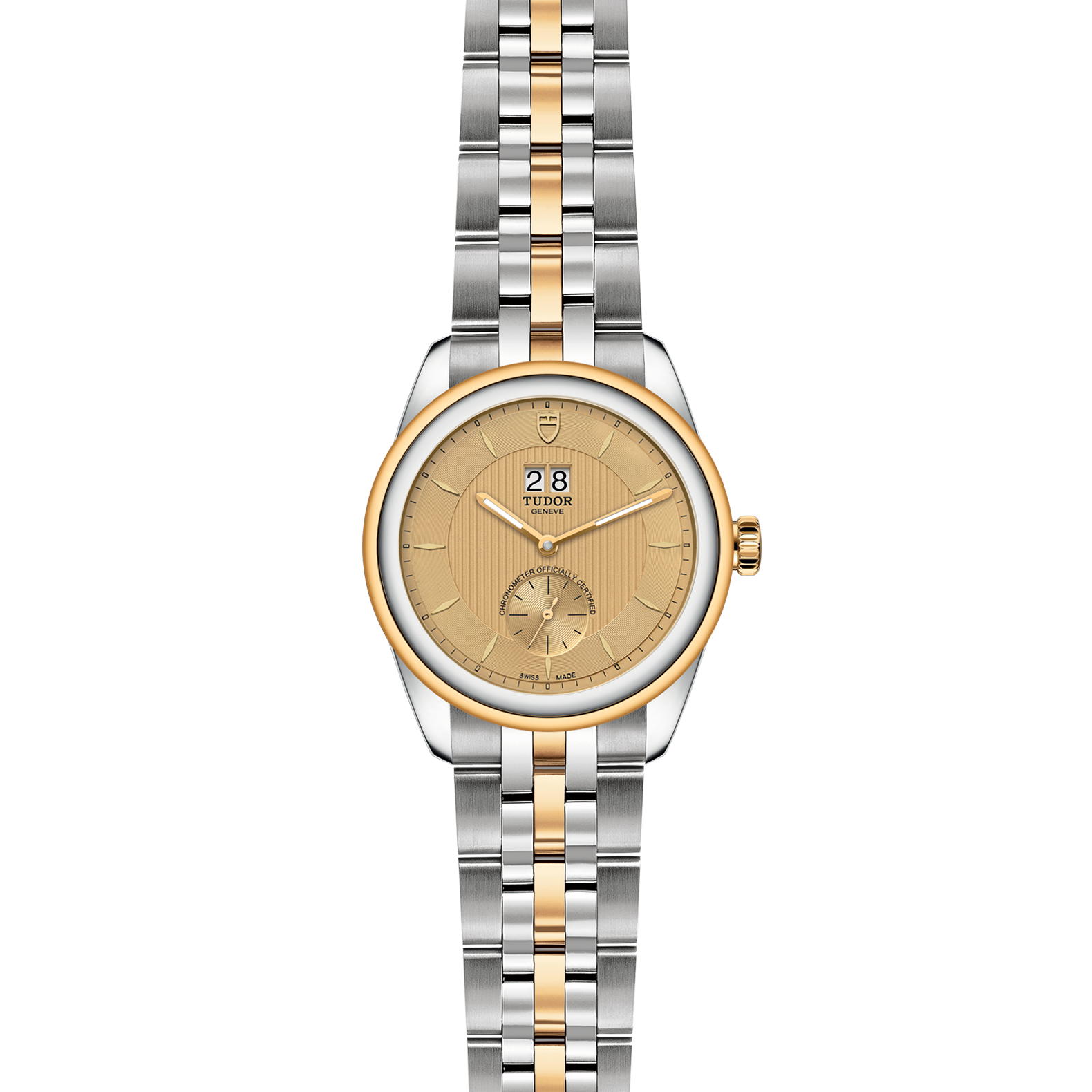 旋入式上链錶冠,饰以帝舵表标志;由钢芯及0.3毫米黄金包金制成