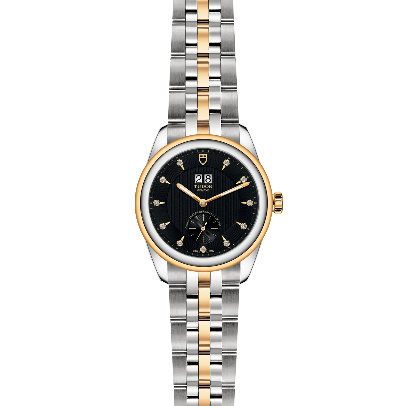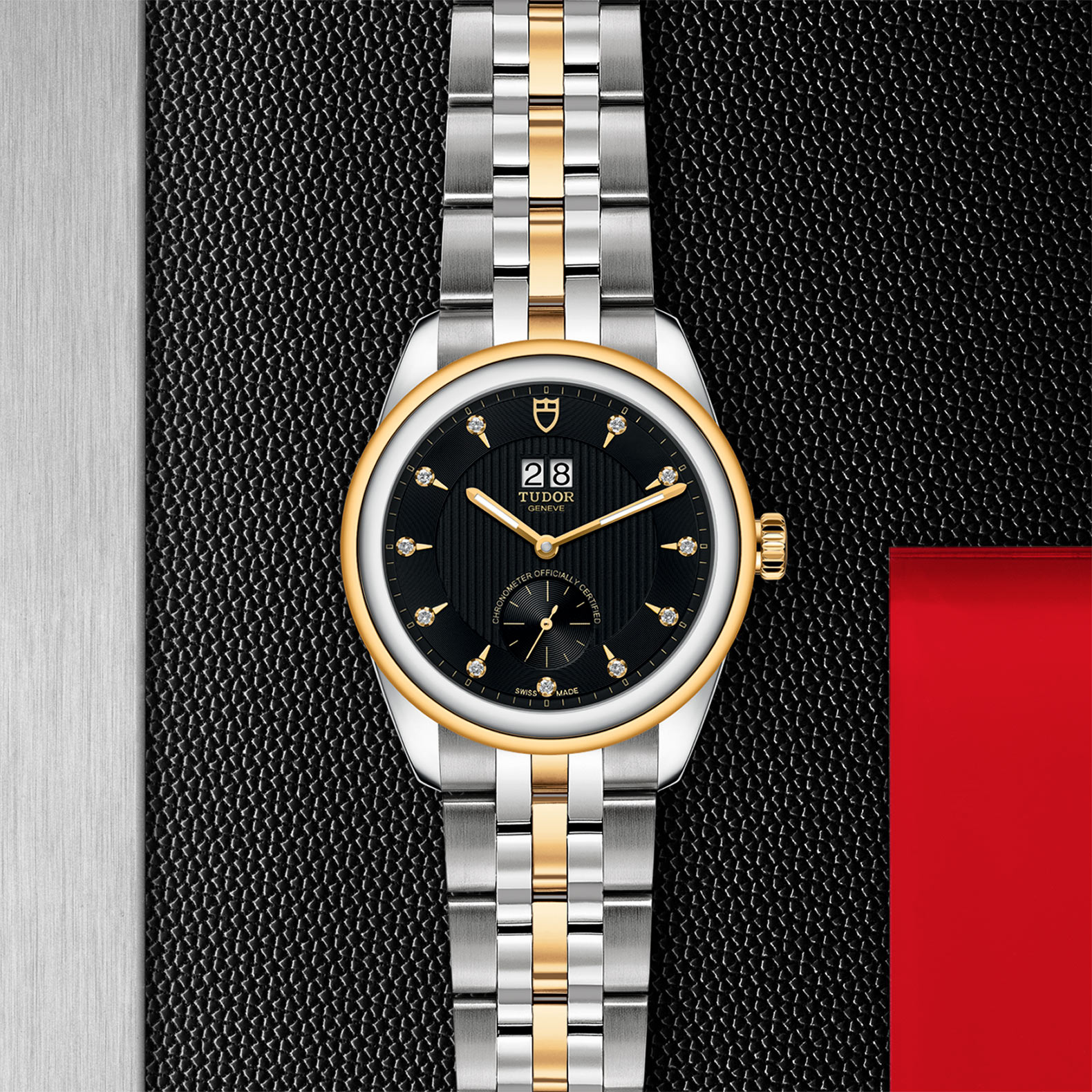 位于6点钟及12点钟位置的首节中间链节由实心黄金制成;其余中间链节由精钢或钢芯及0.2毫米黄金包金制成;摺扣及保险扣