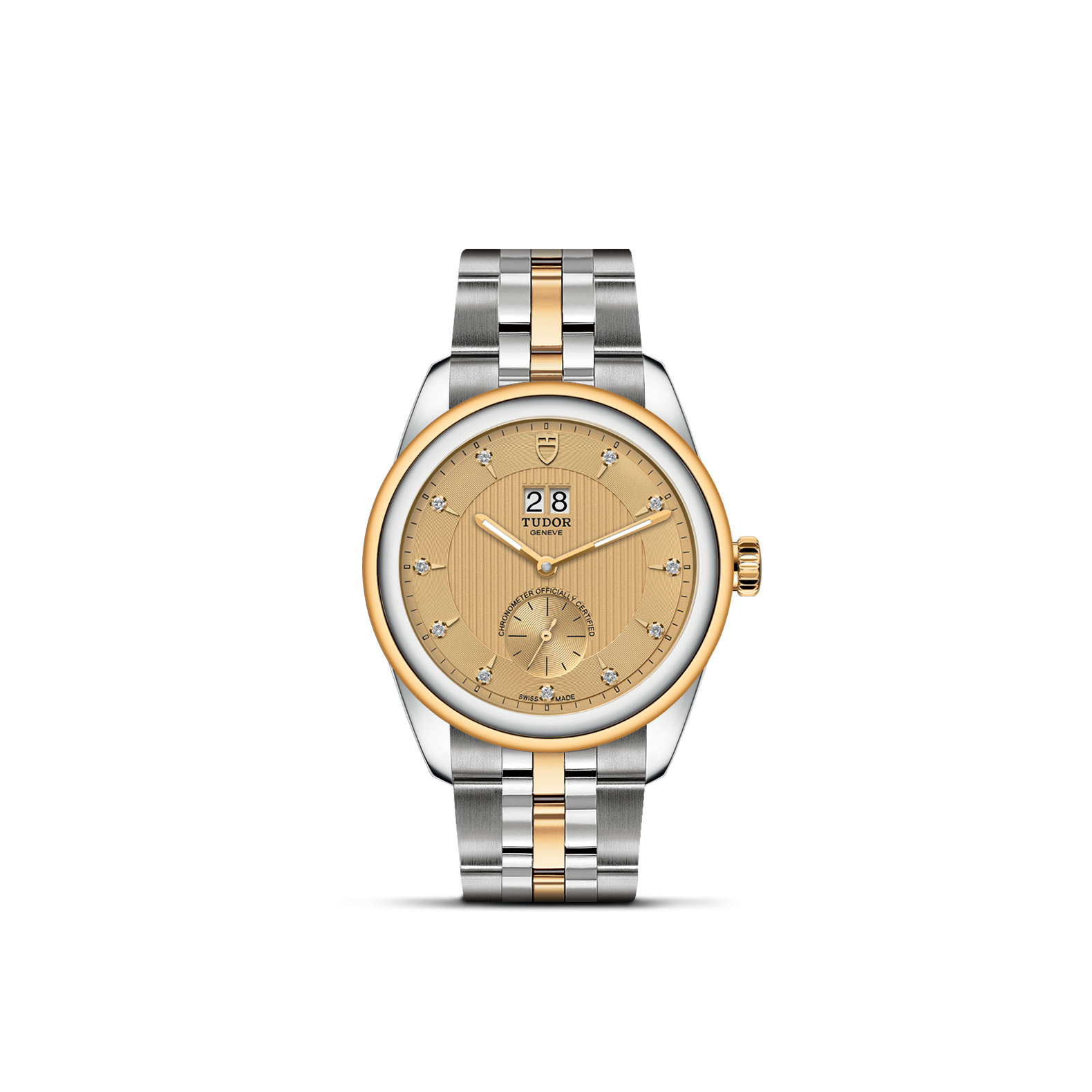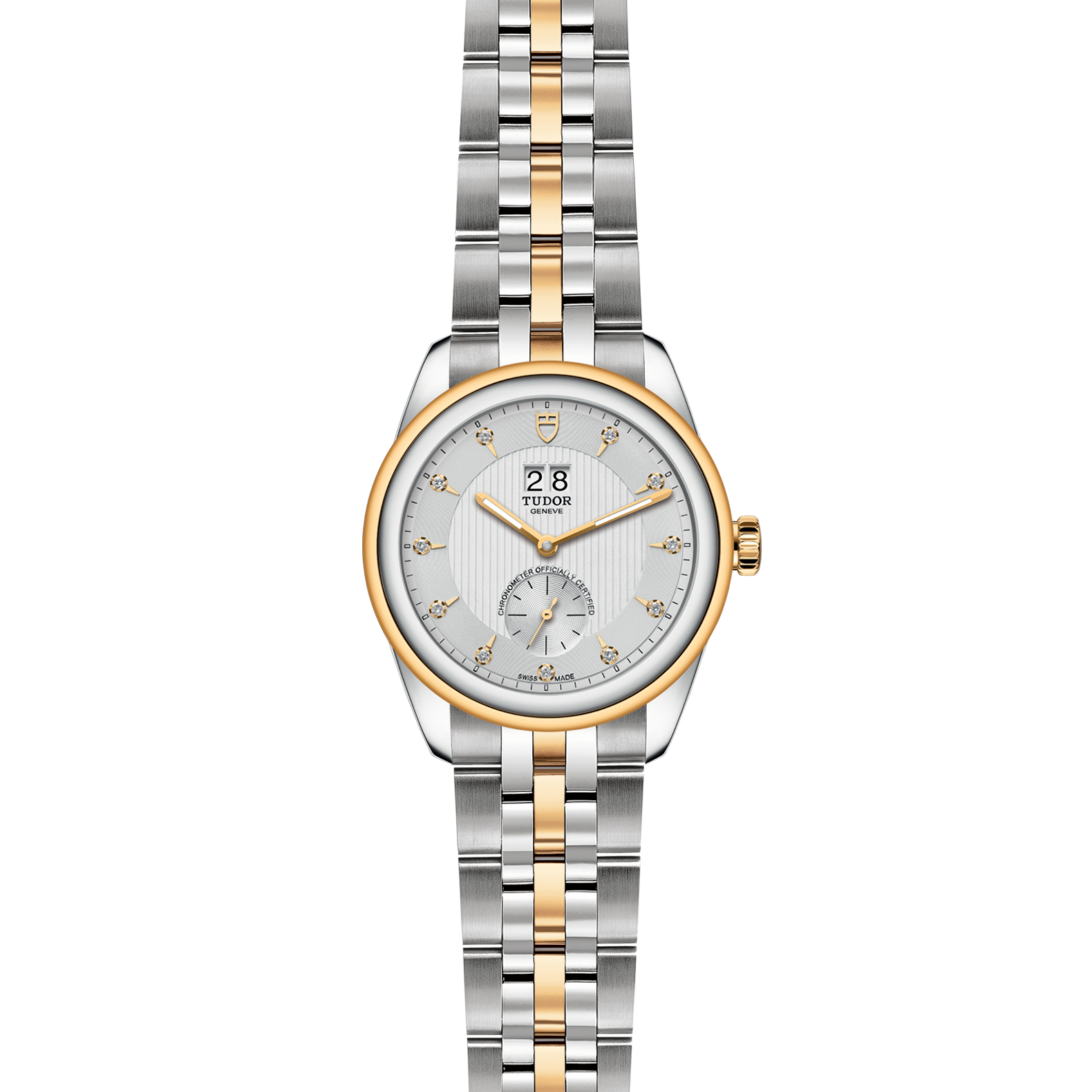 位于6点钟及12点钟位置的首节中间链节由实心黄金制成;其余中间链节由精钢或钢芯及0.2毫米黄金包金制成;摺扣及保险扣