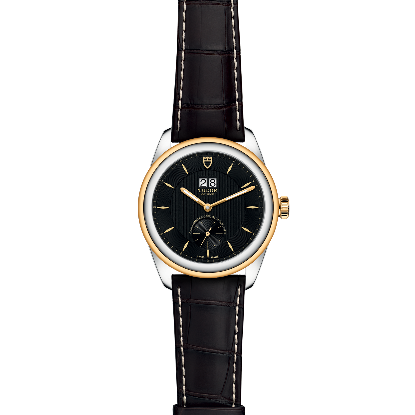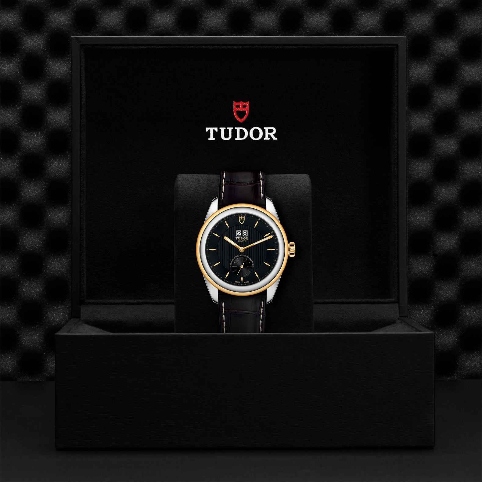 旋入式上链錶冠,饰以帝舵表标志;由钢芯及0.3毫米黄金包金制成