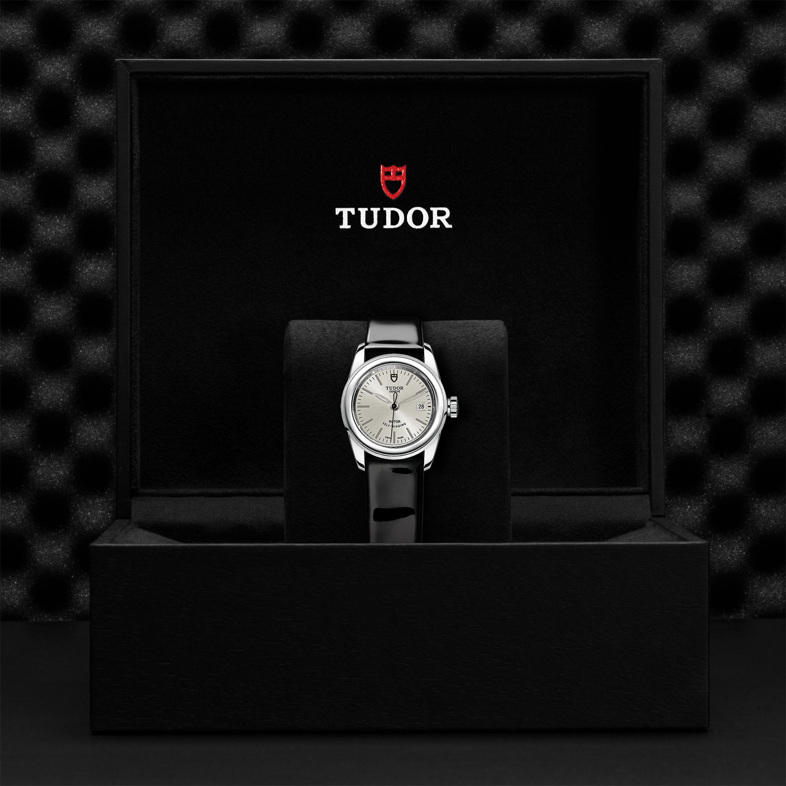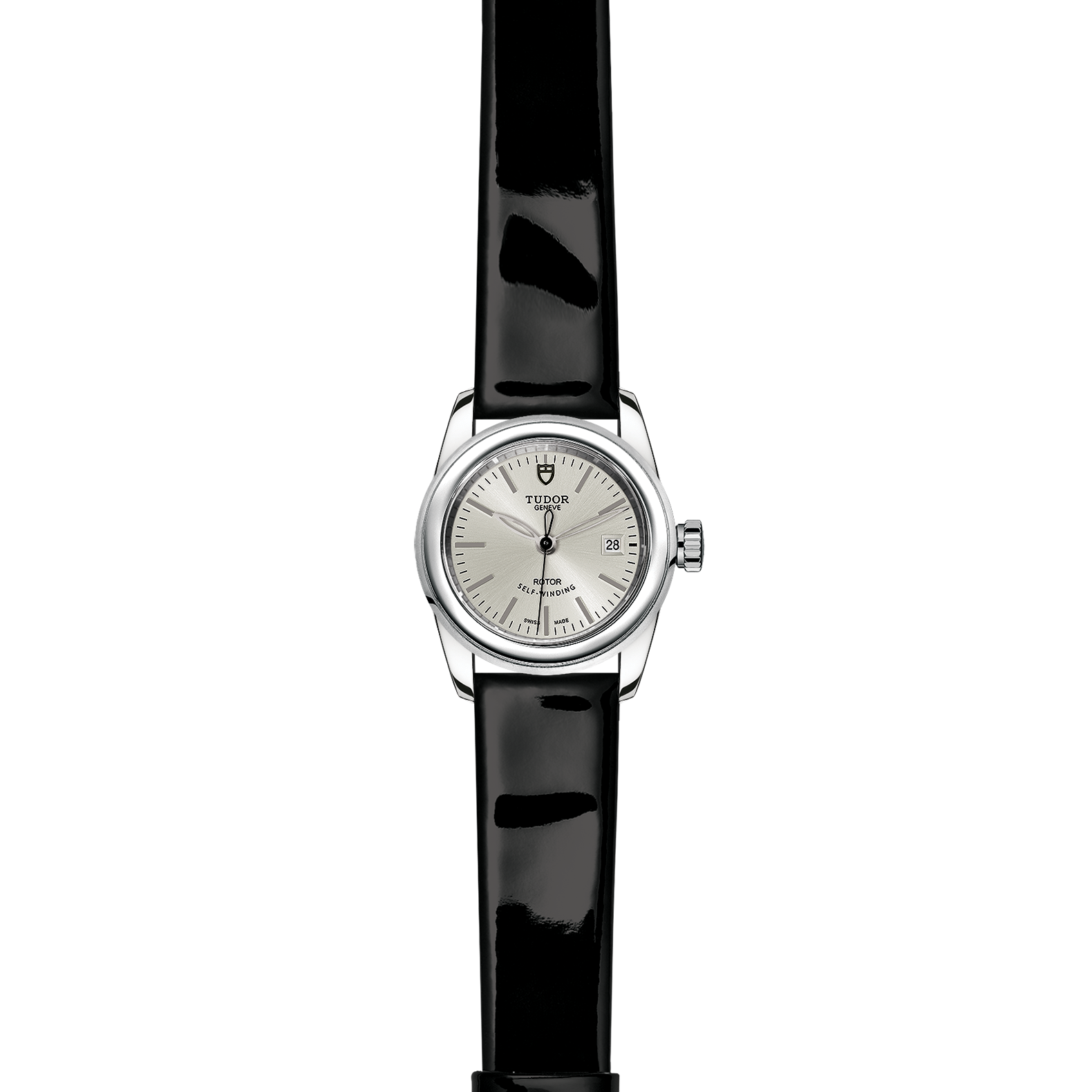 黑色漆皮表带,配摺扣