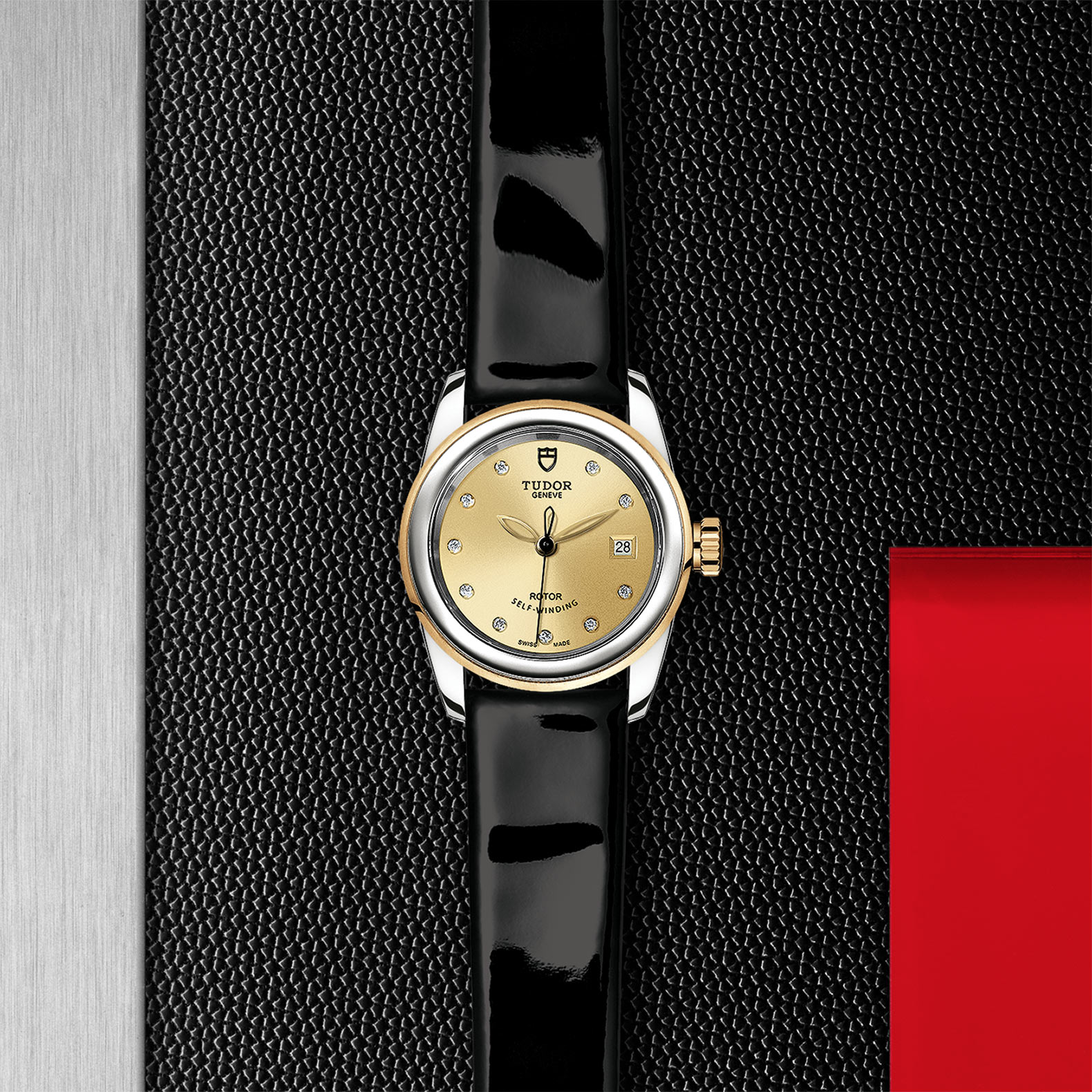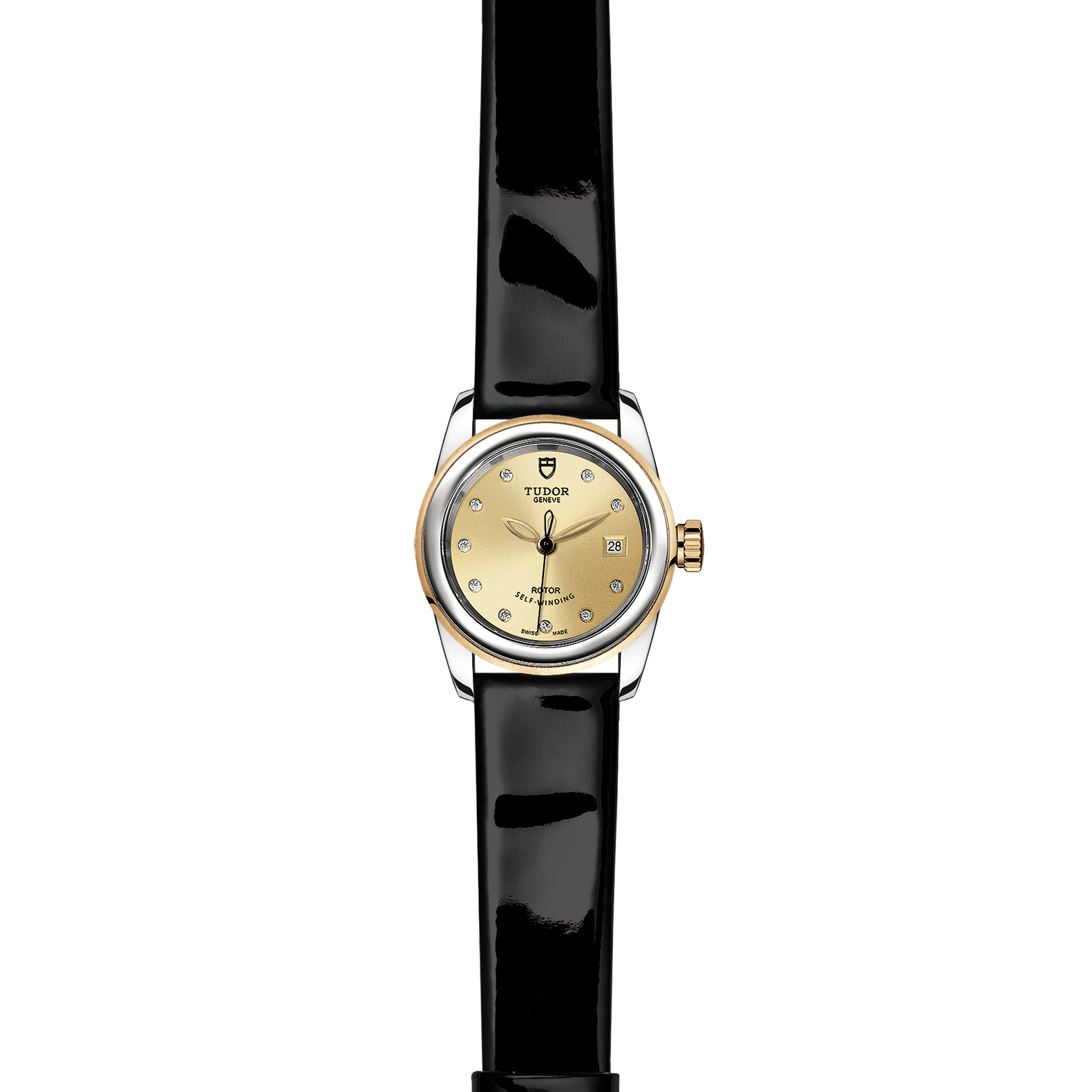 黑色漆皮表带,配摺扣