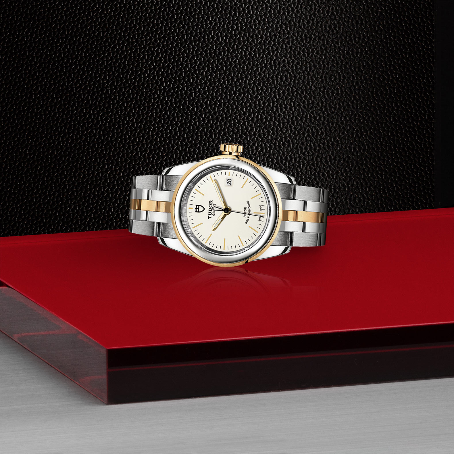 位于6点钟及12点钟位置的首节中间链节由实心黄金制成;其余中间链节由精钢或钢芯及0.2毫米黄金包金制成;摺扣及保险扣