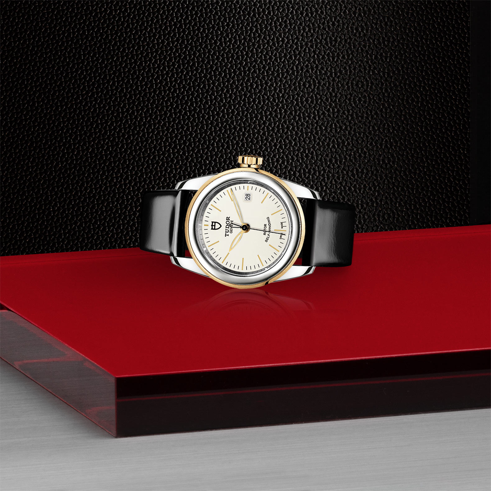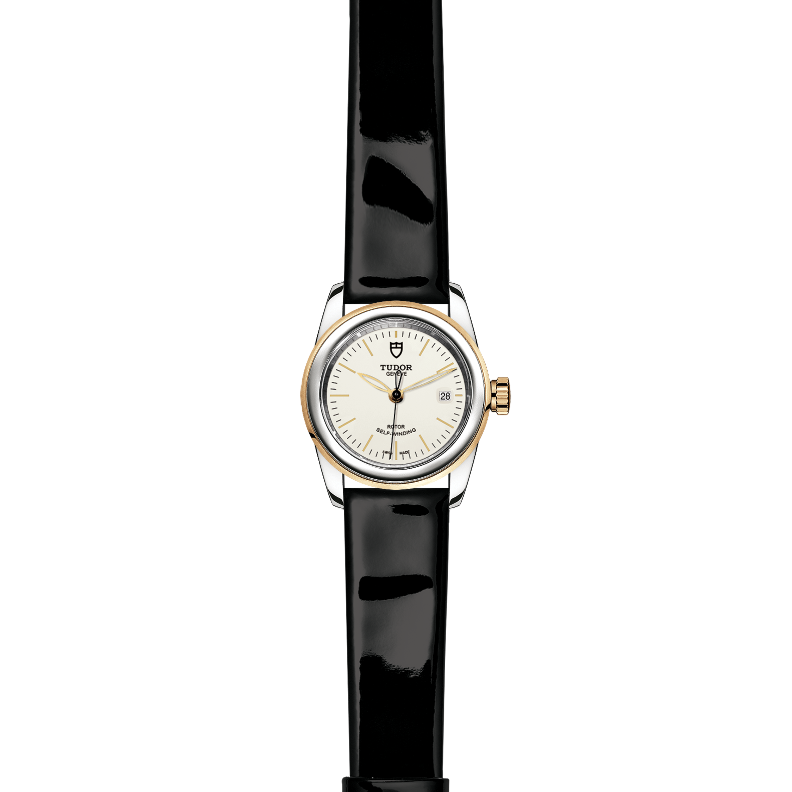 黑色漆皮表带,配摺扣