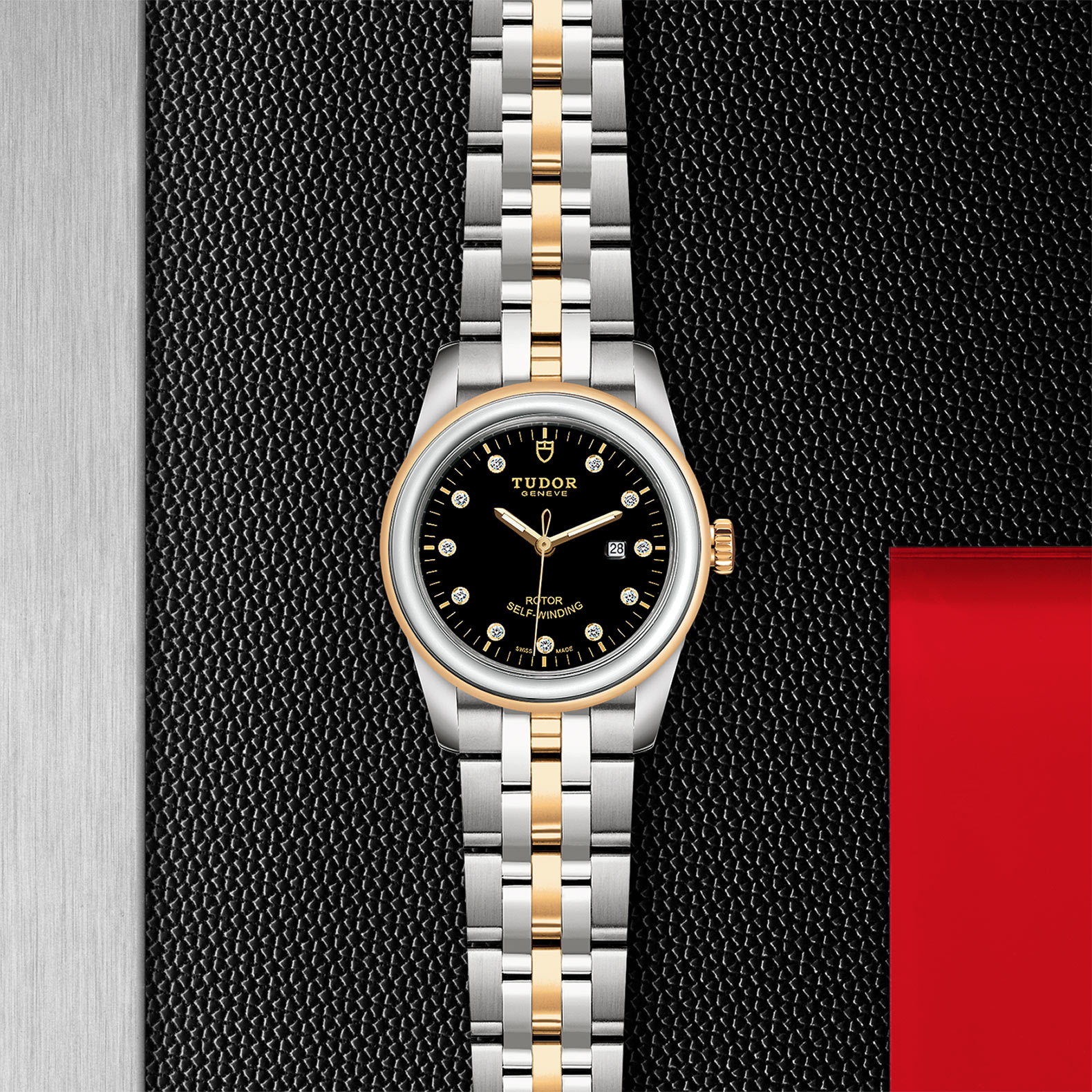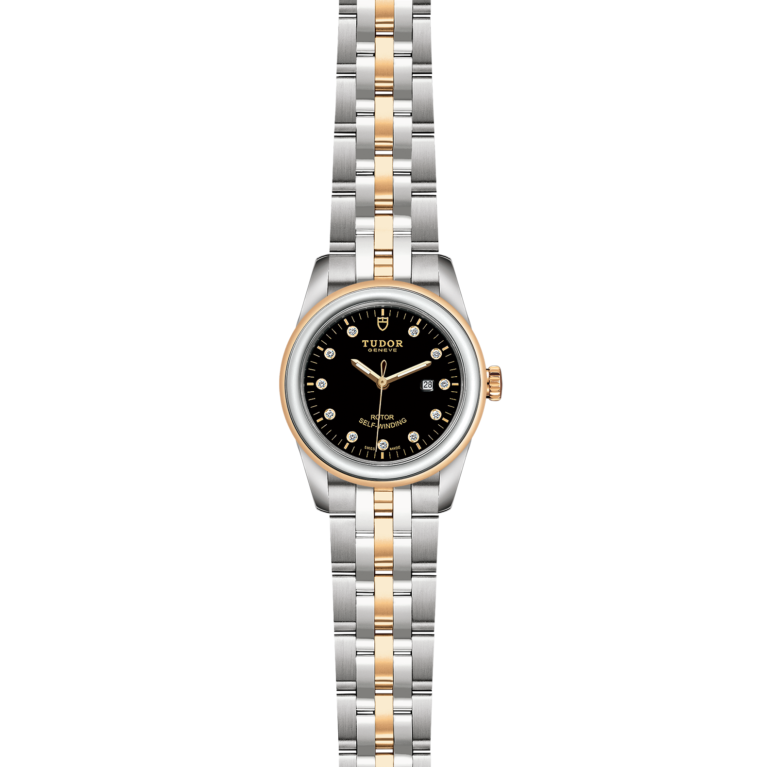 位于6点钟及12点钟位置的首节中间链节由实心黄金制成;其余中间链节由精钢或钢芯及0.2毫米黄金包金制成;摺扣及保险扣