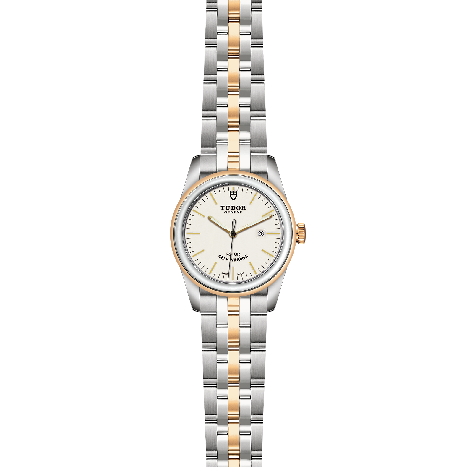 位于6点钟及12点钟位置的首节中间链节由实心黄金制成;其余中间链节由精钢或钢芯及0.2毫米黄金包金制成;摺扣及保险扣