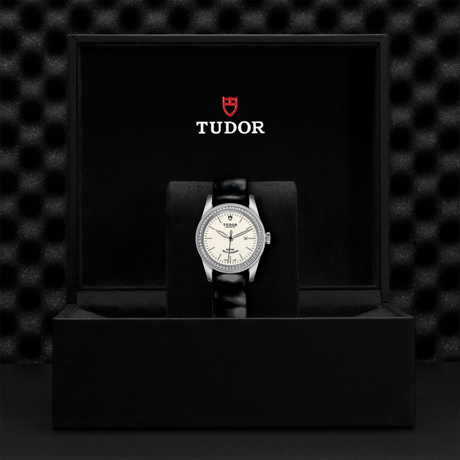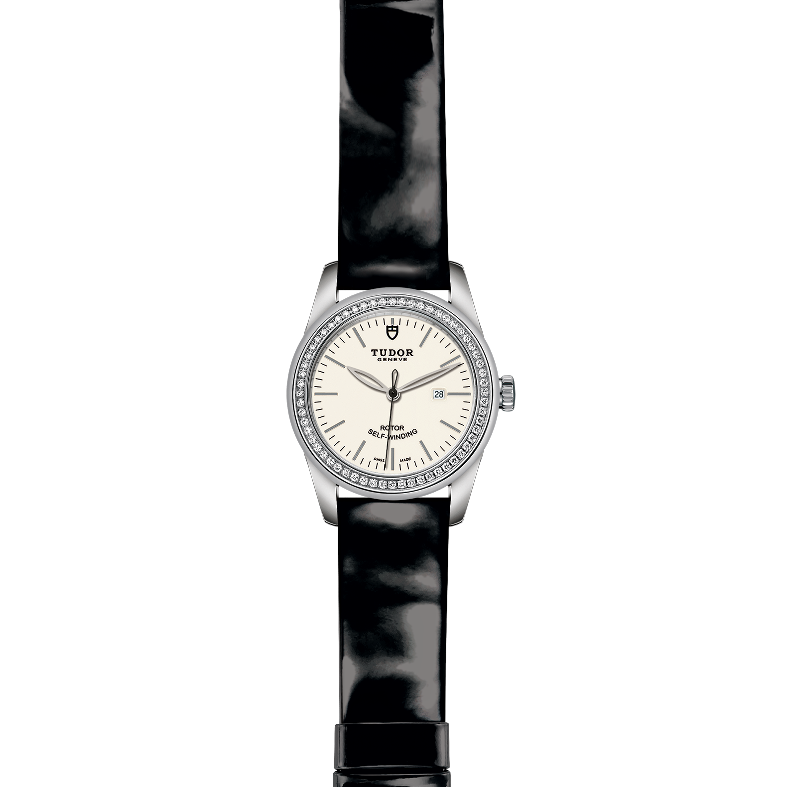 黑色漆皮表带,配摺扣