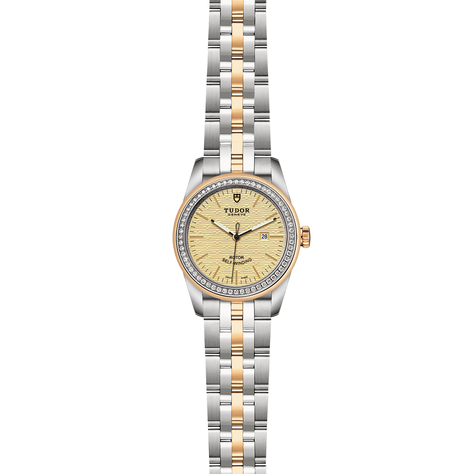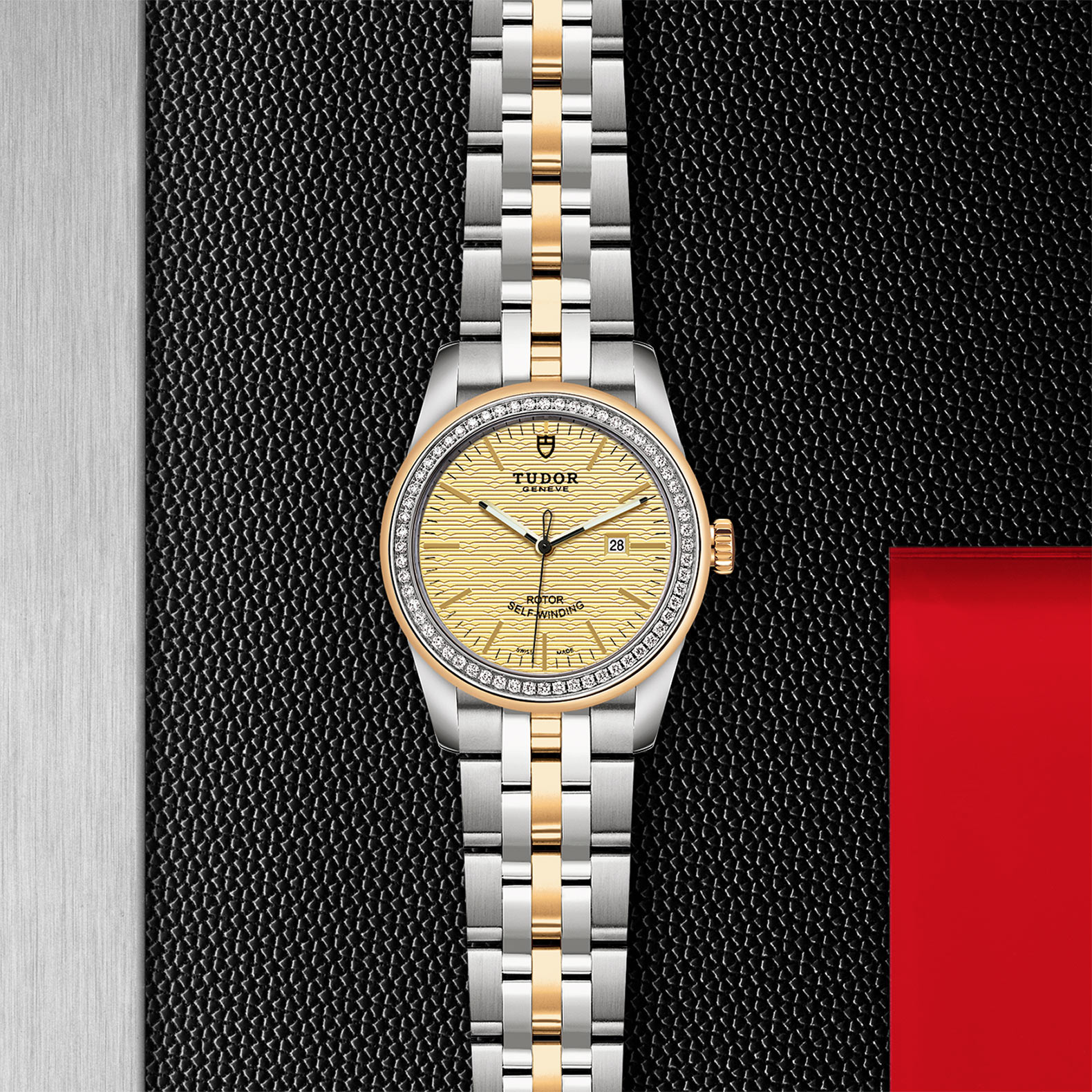 位于6点钟及12点钟位置的首节中间链节由实心黄金制成;其余中间链节由精钢或钢芯及0.2毫米黄金包金制成;摺扣及保险扣