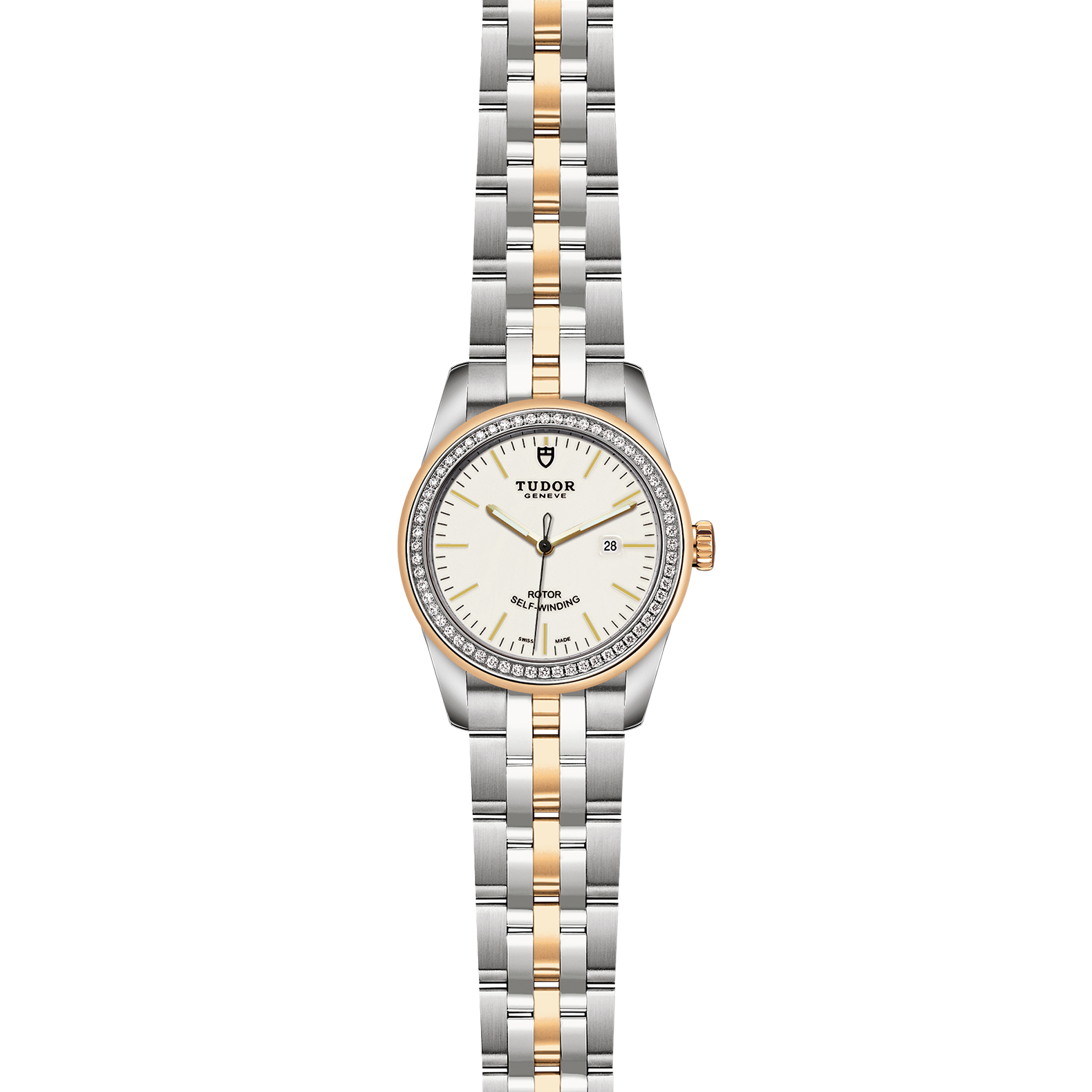 位于6点钟及12点钟位置的首节中间链节由实心黄金制成;其余中间链节由精钢或钢芯及0.2毫米黄金包金制成;摺扣及保险扣