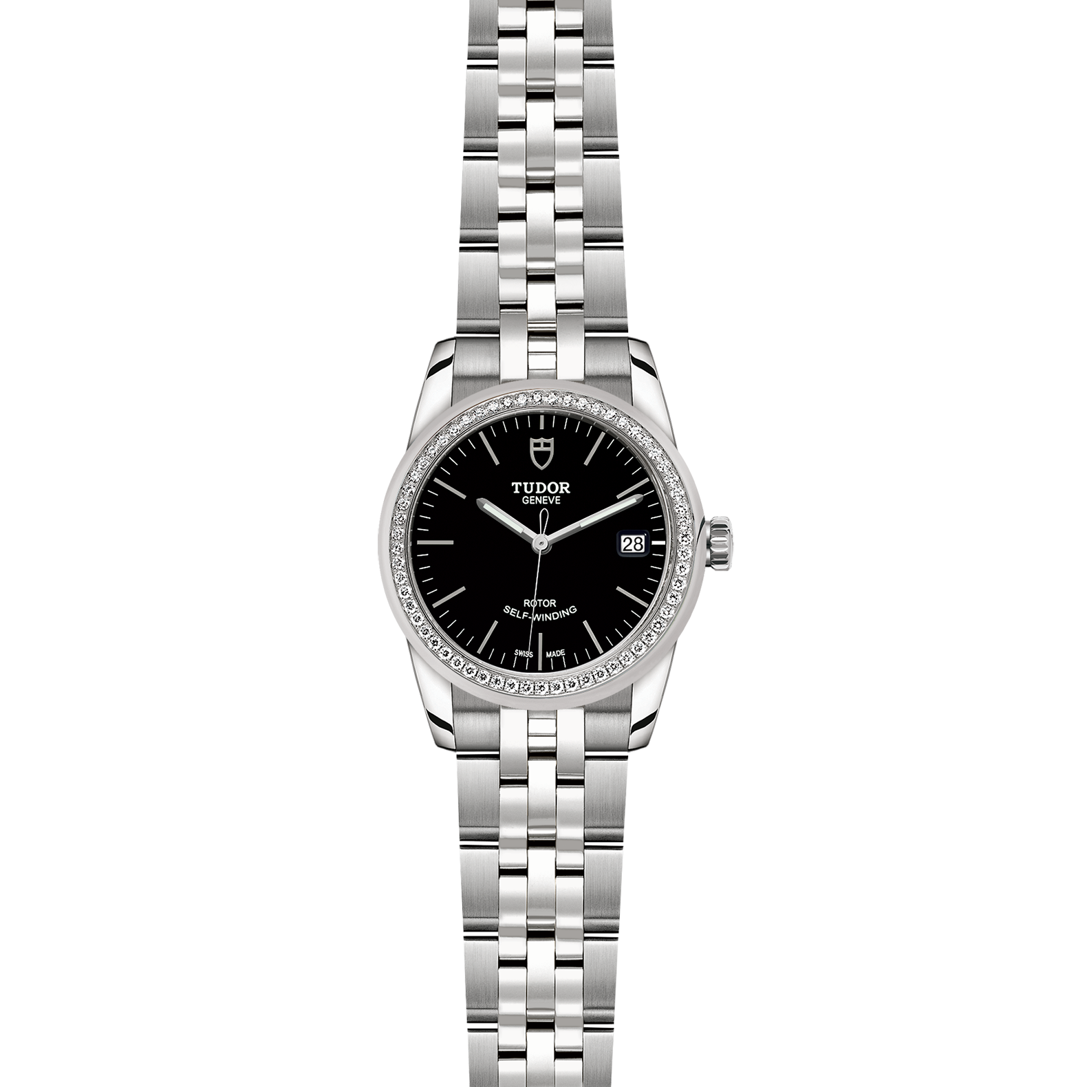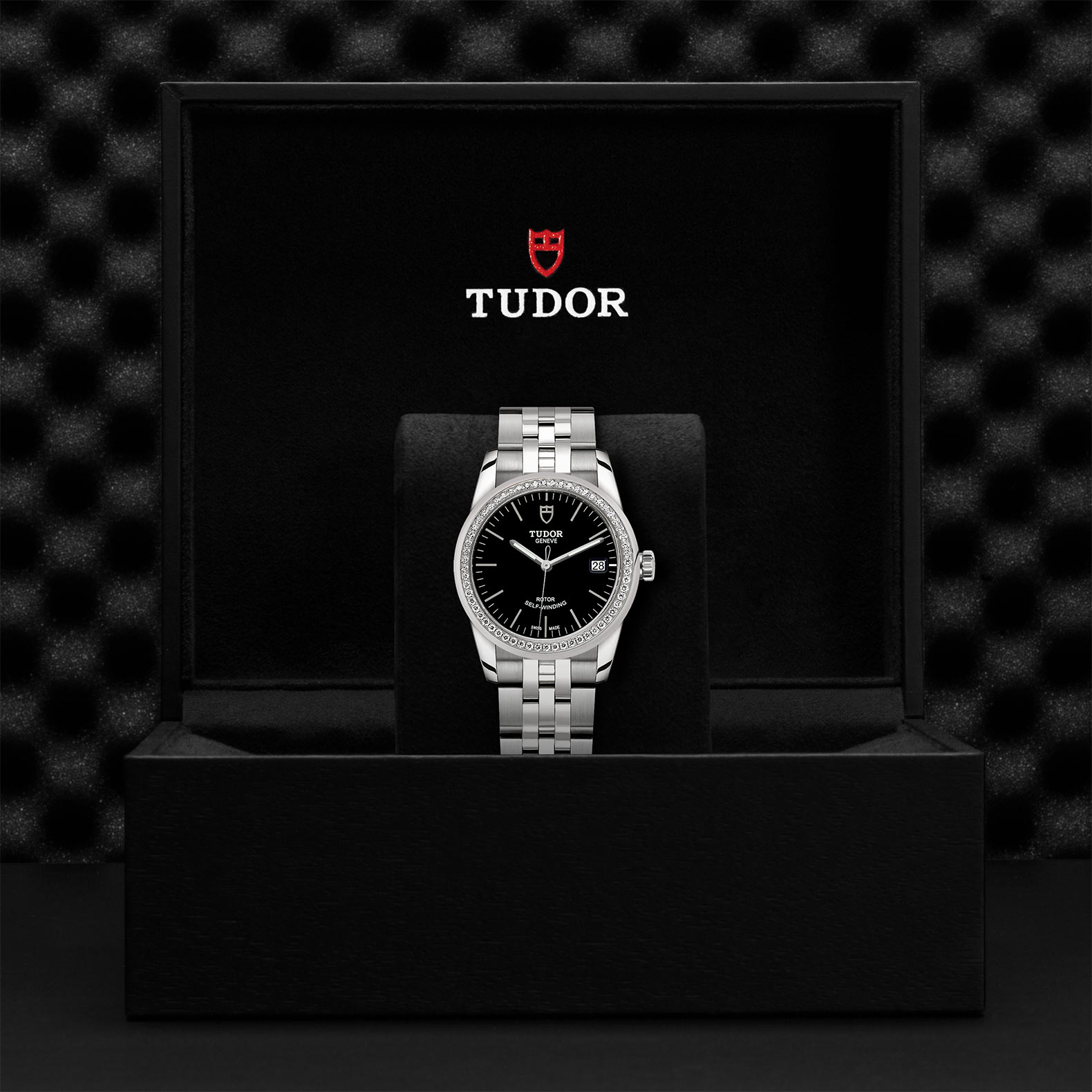 精钢旋入式上链錶冠,饰以帝舵表标志