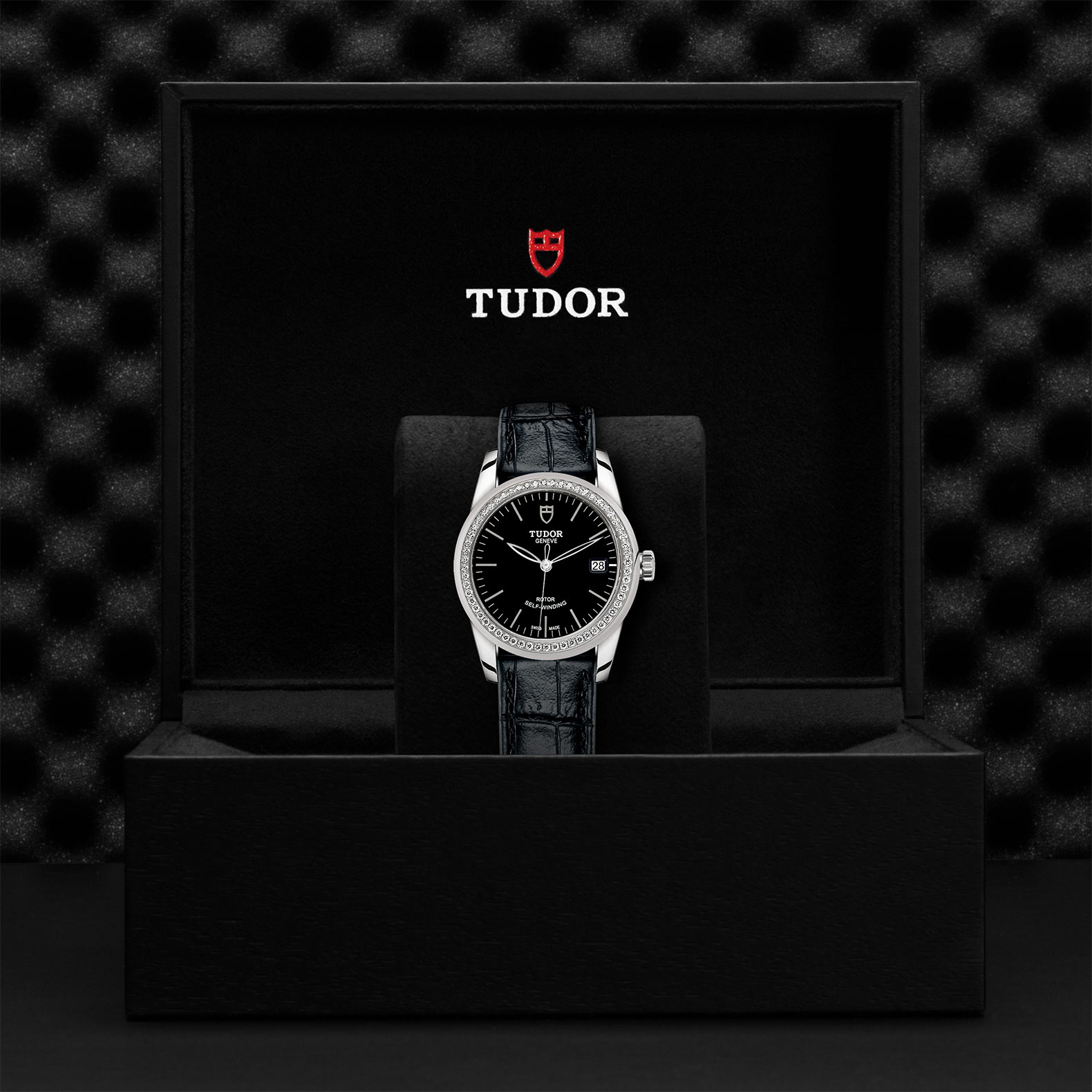 精钢旋入式上链錶冠,饰以帝舵表标志
