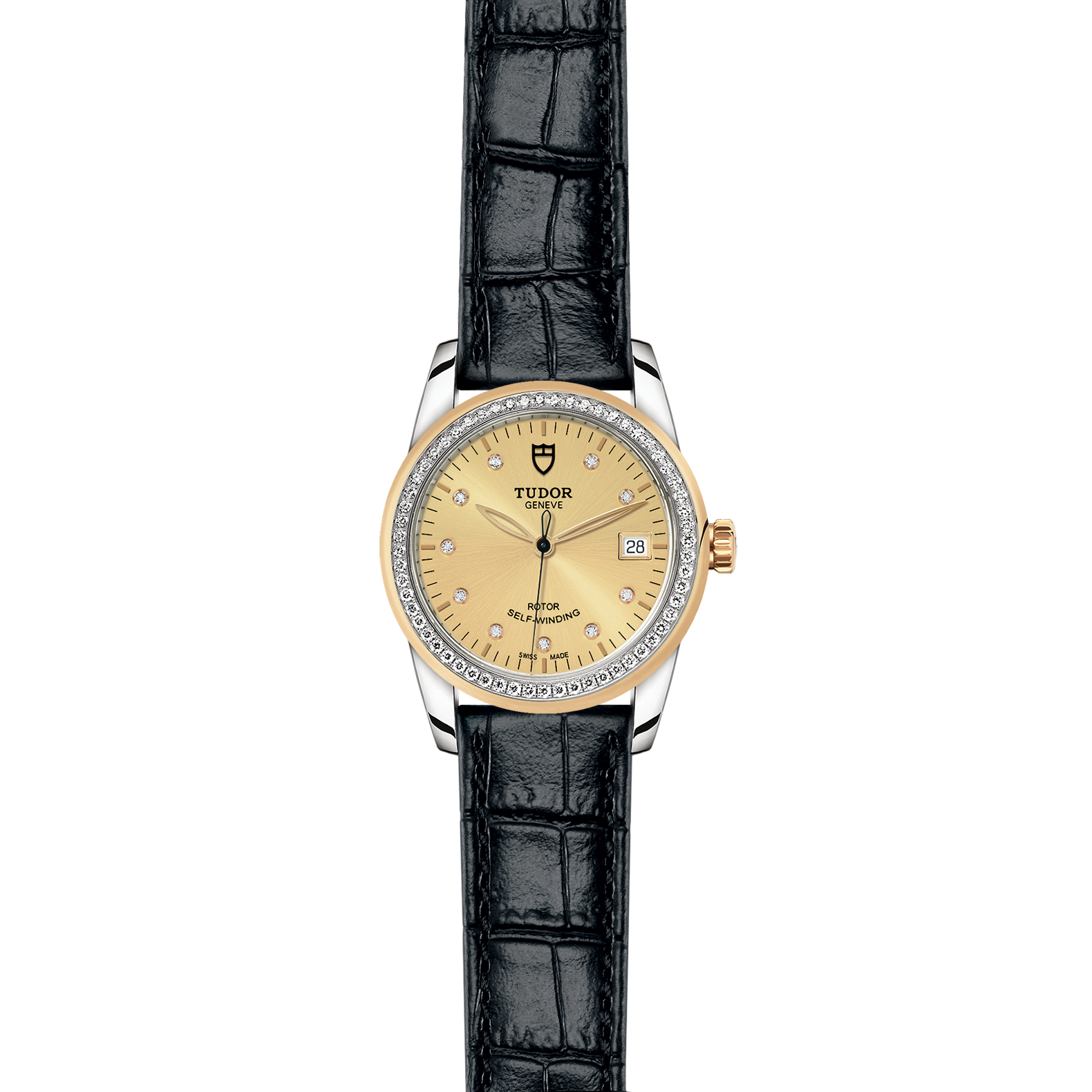 磨光实心黄金及钢双外圈,镶60颗钻石