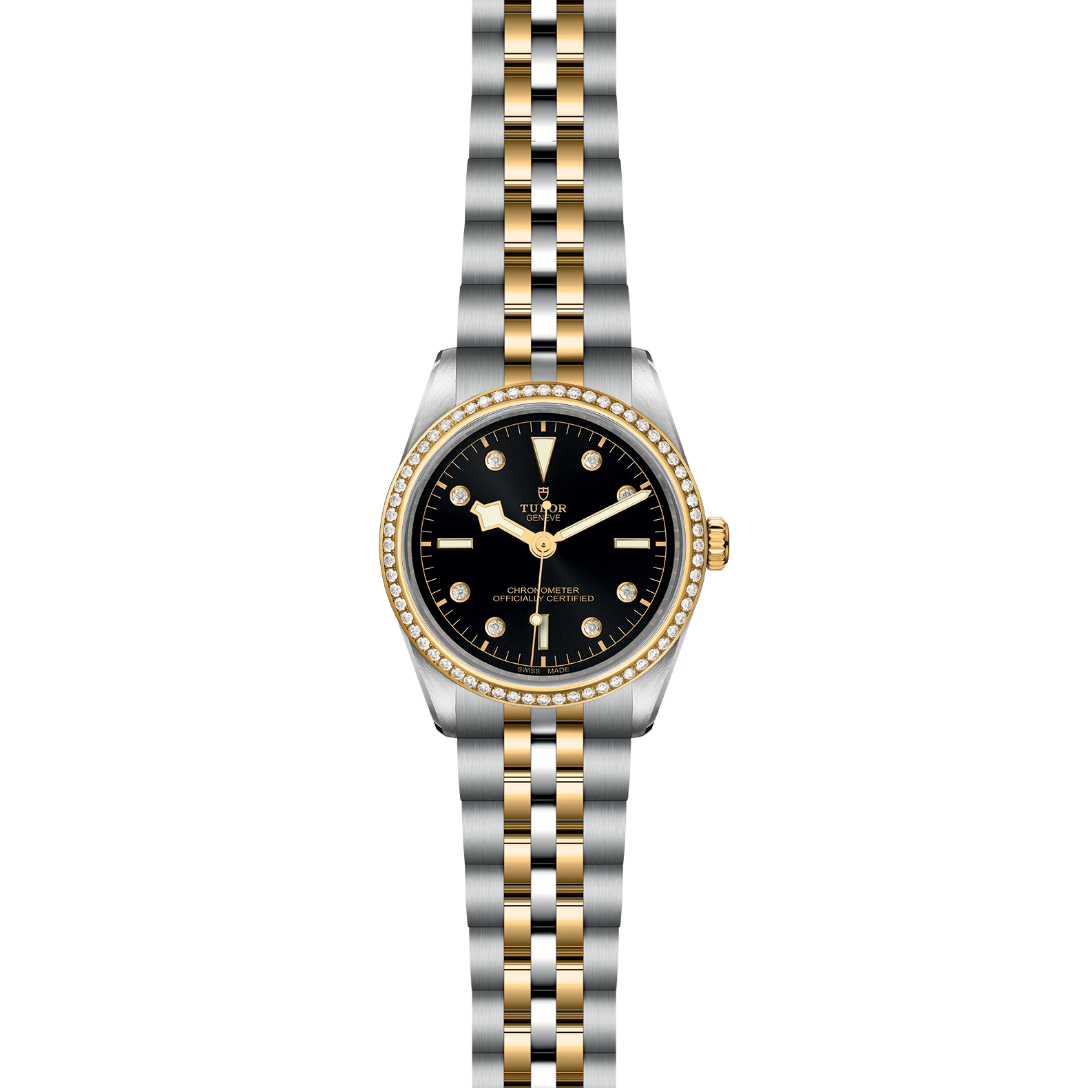 旋入式上鏈錶冠,飾以浮雕帝舵表玫瑰標誌;精鋼覆有0.1毫米黃金薄層