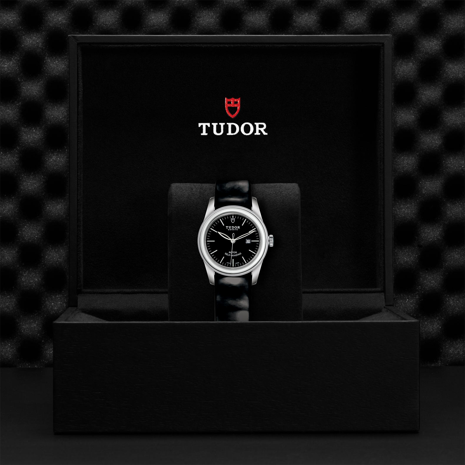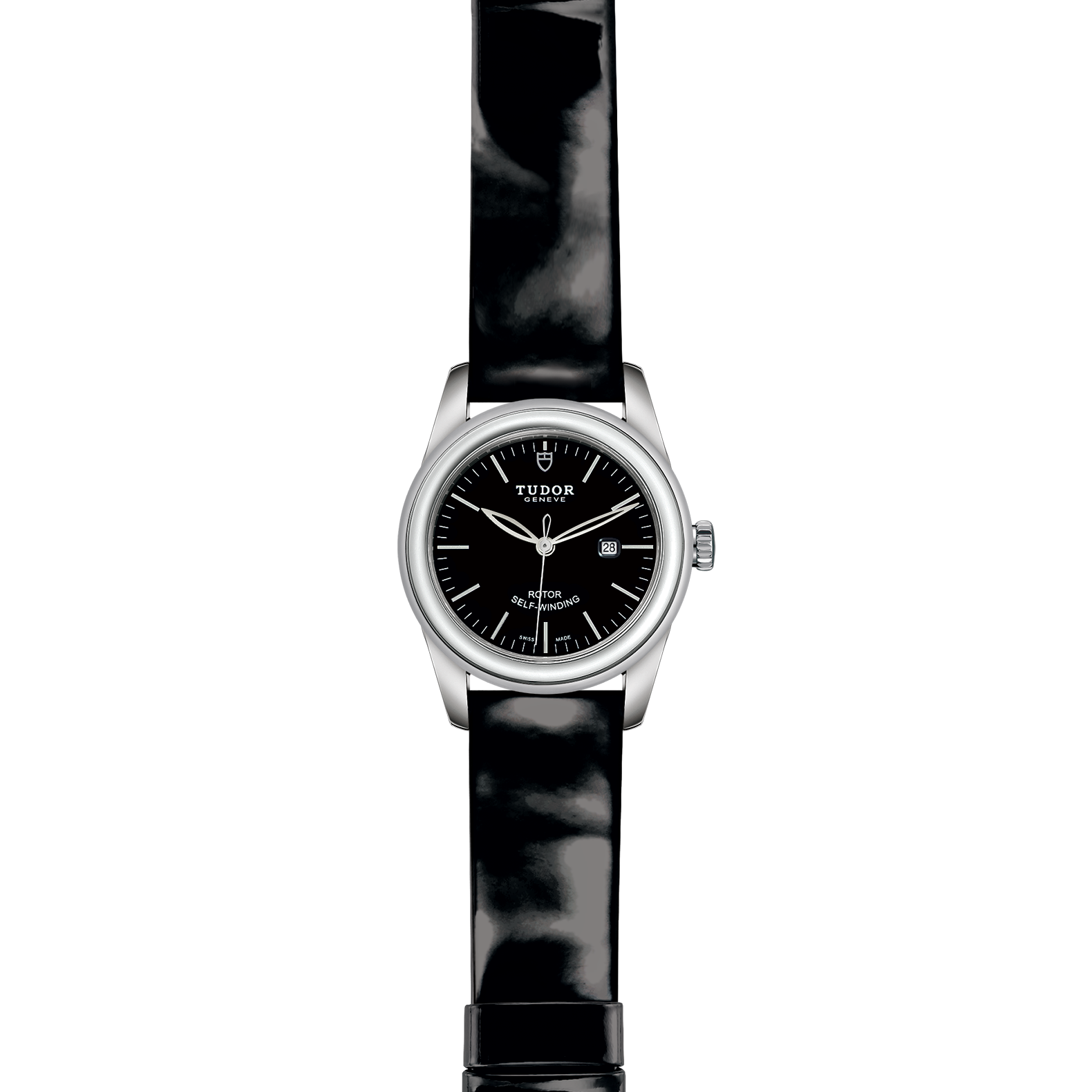 黑色漆皮錶帶,配摺扣