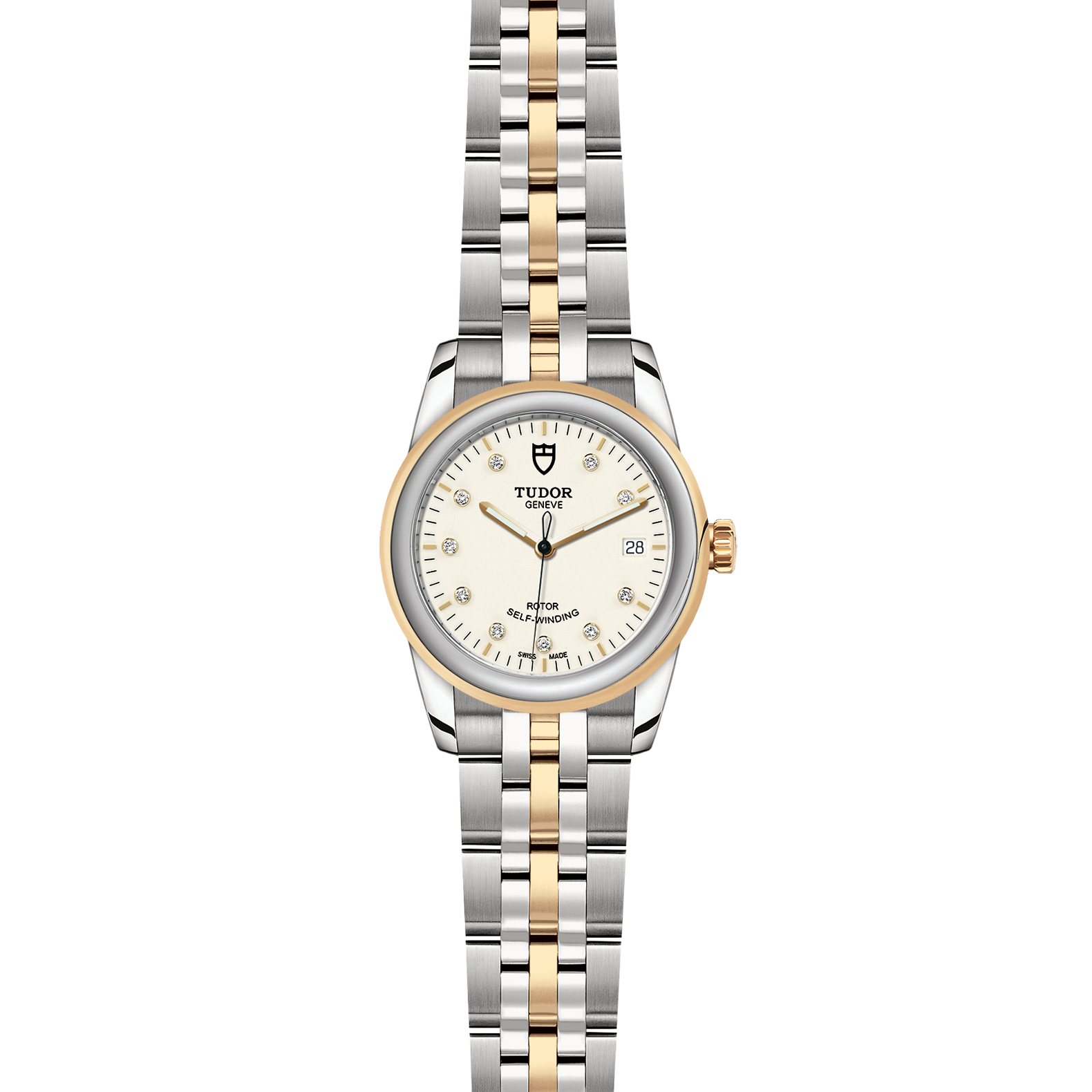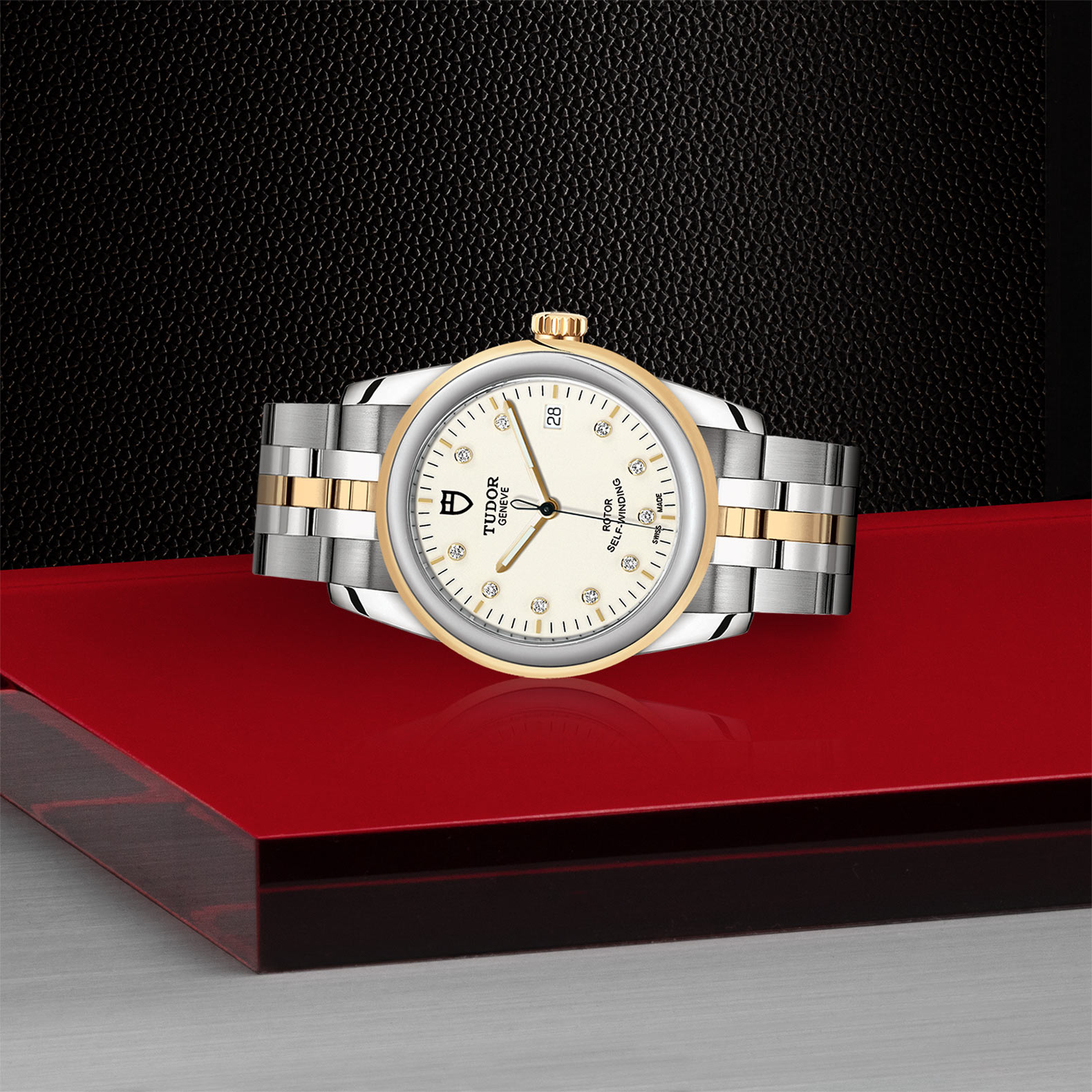 位於6點鐘及12點鐘位置的首節中間鏈節由實心黃金製成;其餘中間鏈節由精鋼或鋼芯及0.2毫米黃金包金製成;摺扣及保險扣