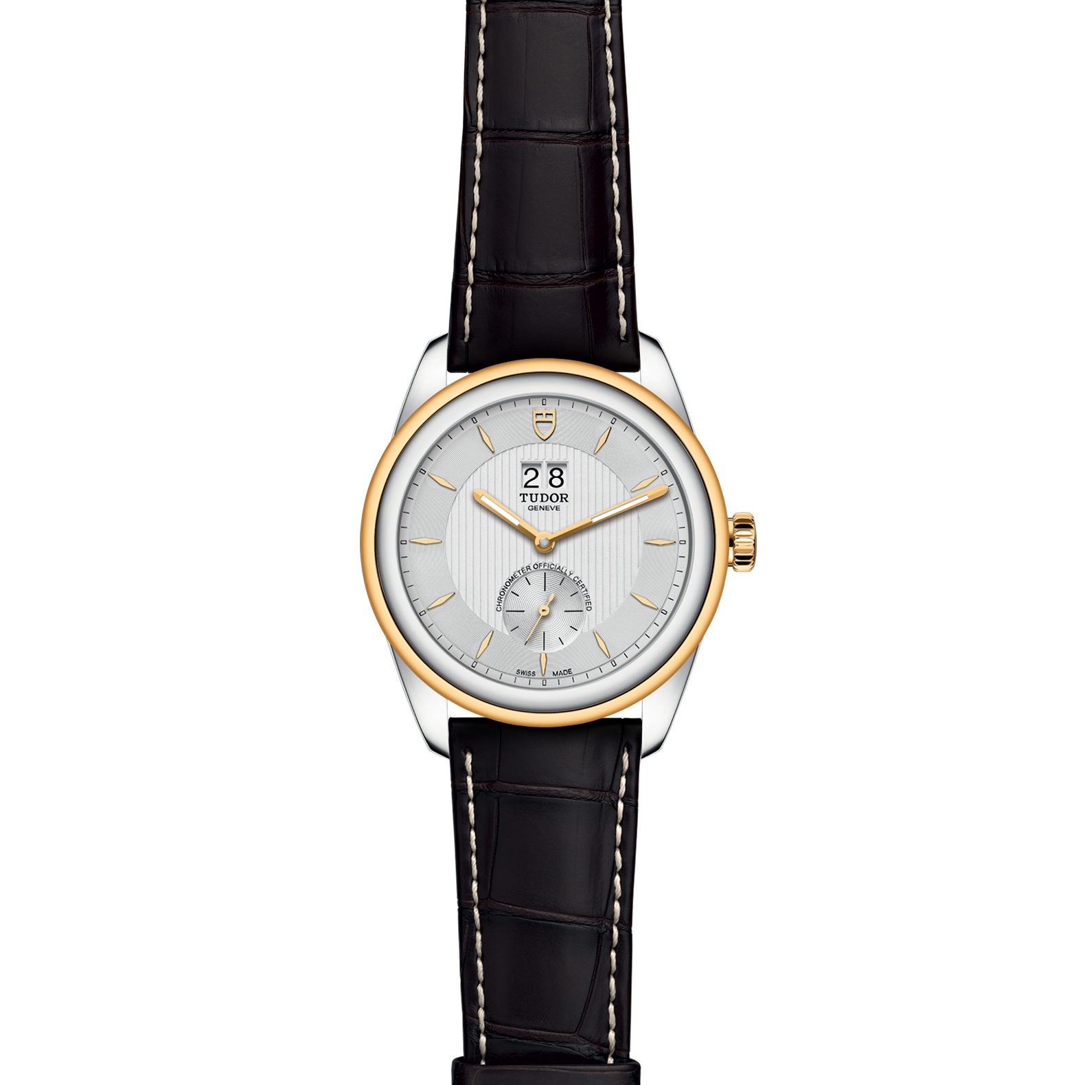 旋入式上鏈錶冠,飾以帝舵表標誌;由鋼芯及0.3毫米黃金包金製成