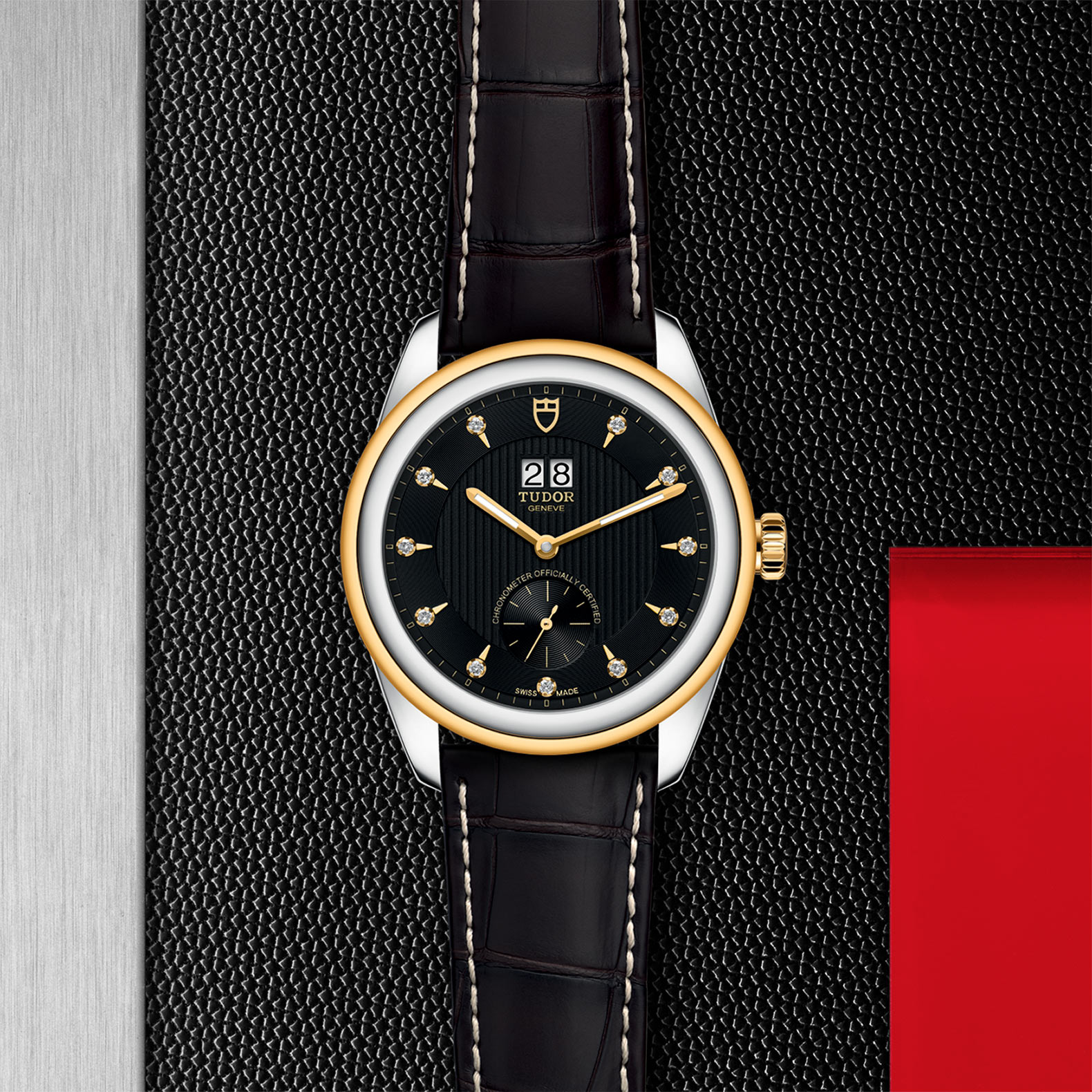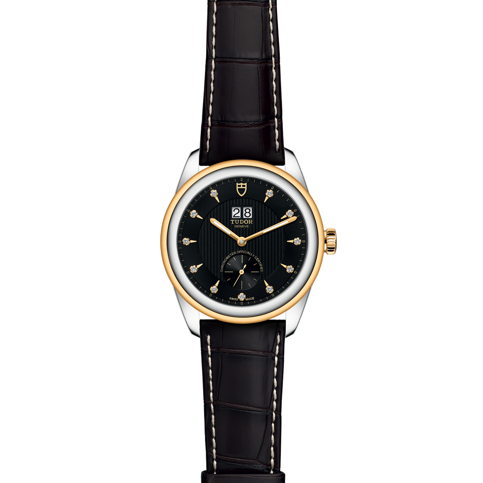 黑色配鍍銠或鍍金鐘點標記,鑲11顆鑽石