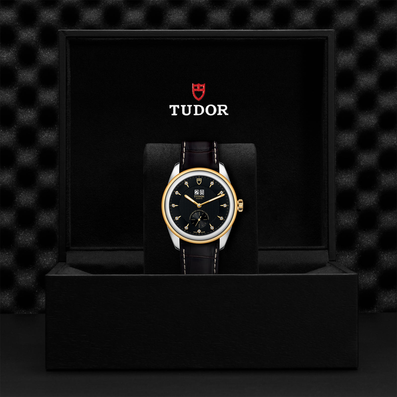 旋入式上鏈錶冠,飾以帝舵表標誌;由鋼芯及0.3毫米黃金包金製成
